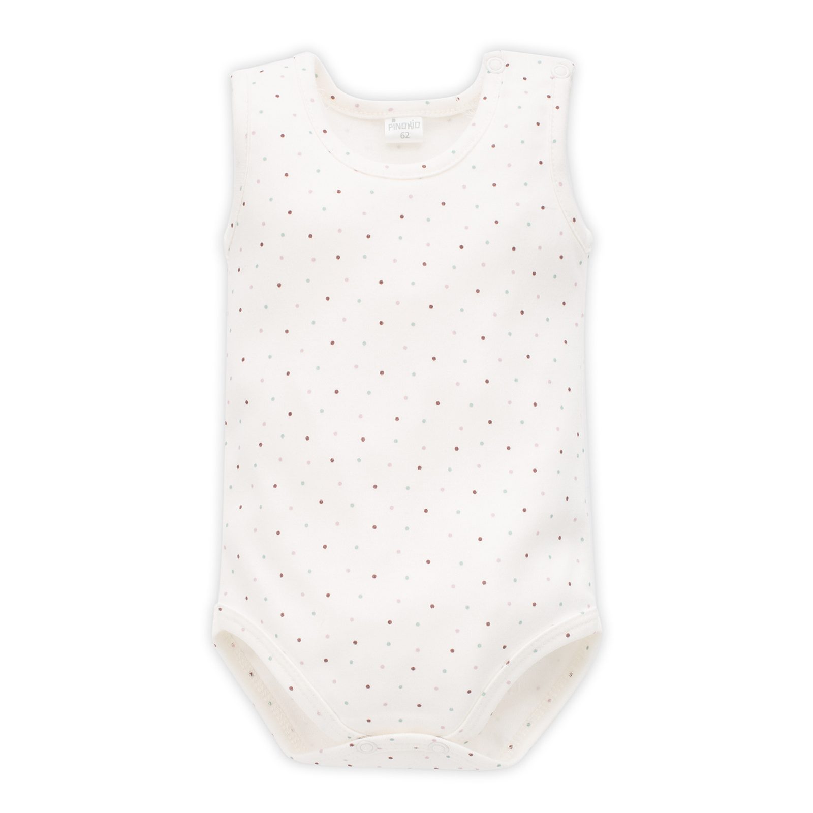 Kojenecké body-tílko značky PINOKIO z kolekce Magic Vibes  - KRÉMOVÉ s potiskem barevných puntíků: zapínání na rameni a mezi nožičkama na druky, kvalitní a příjemný materiál, 100% bavlna (jersey úplet). Slaďte s dalšími kousky oblečení ze stejné kolekce značky PINOKIO! Orientační rozměry*: 62 -…