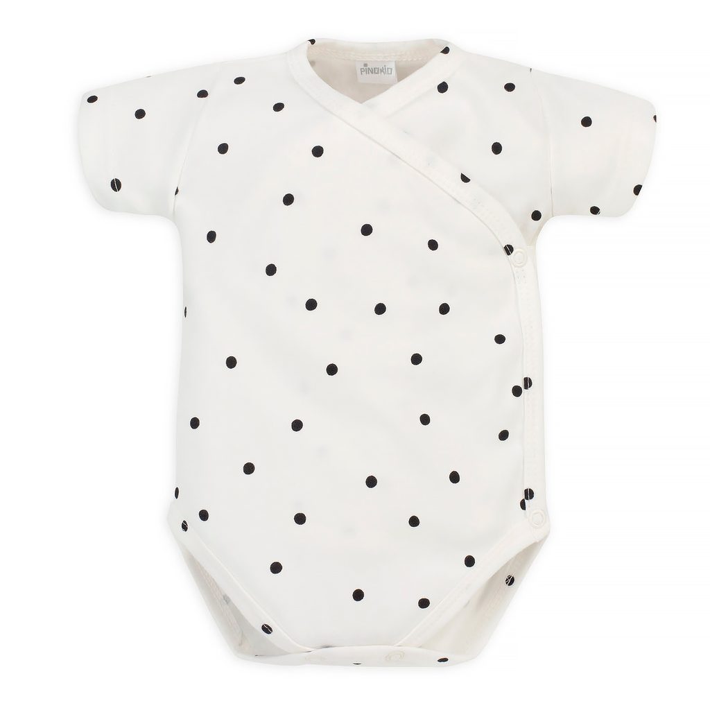 Zavinovací kojenecké body s krátkým rukávem značky PINOKIO z kolekce Tres Bien v krémové barvě, s puntíky: