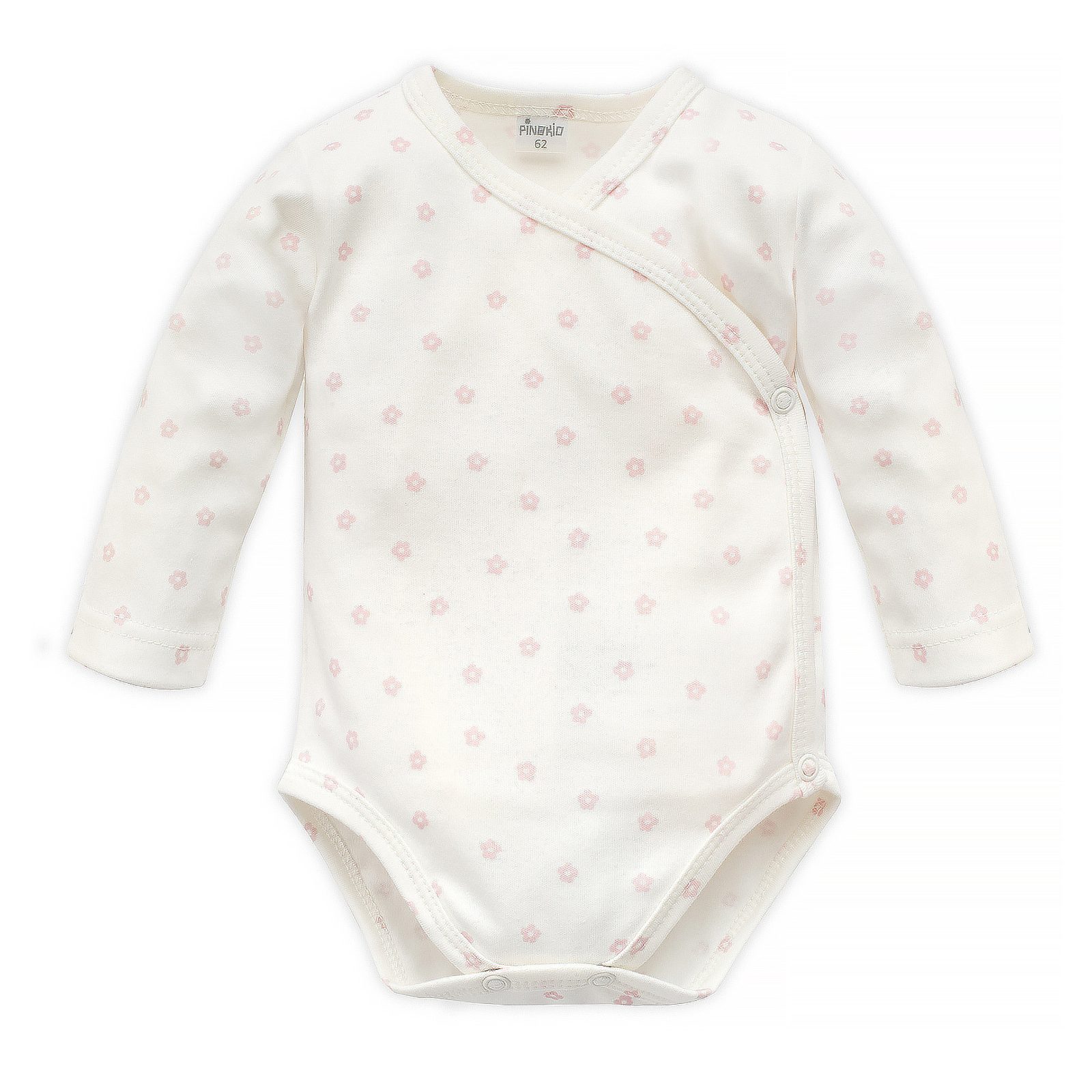 Zavinovací kojenecké body s dlouhým rukávem značky PINOKIO z kolekce Lovely Day Rose v krémové barvě s drobným motivem růžových kytiček: