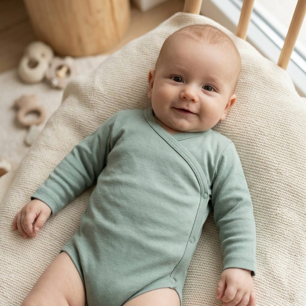 Zavinovací kojenecké body s dlouhým rukávem značky PINOKIO z kolekce Lovely Day v šalvějově zelené barvě: