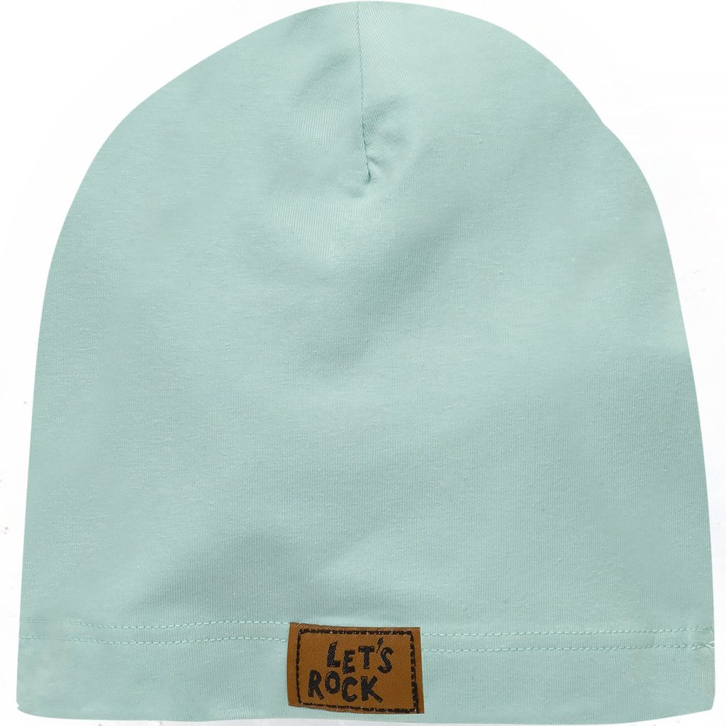 Dětská čepice "beanie" z kolekce Let´s Rock značky PINOKIO v ŠALVĚJOVÉ barvě: beanie = skřítkovská, spadená čepice, s ozdobnou nášivkou, materiál: 95% bavlna/5% elastan (jersey úplet), vyrobeno v EU. Slaďte s dalšími kousky oblečení ze stejné kolekce značky PINOKIO!