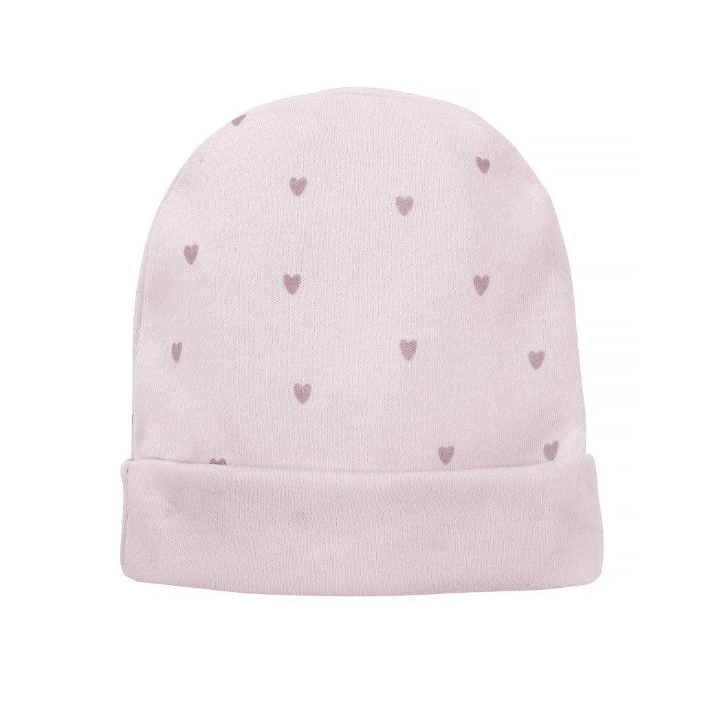 Bavlněná čepička pro miminko z kolekce Hello značky Pinokio - růžová s jemným vzorem srdíček: