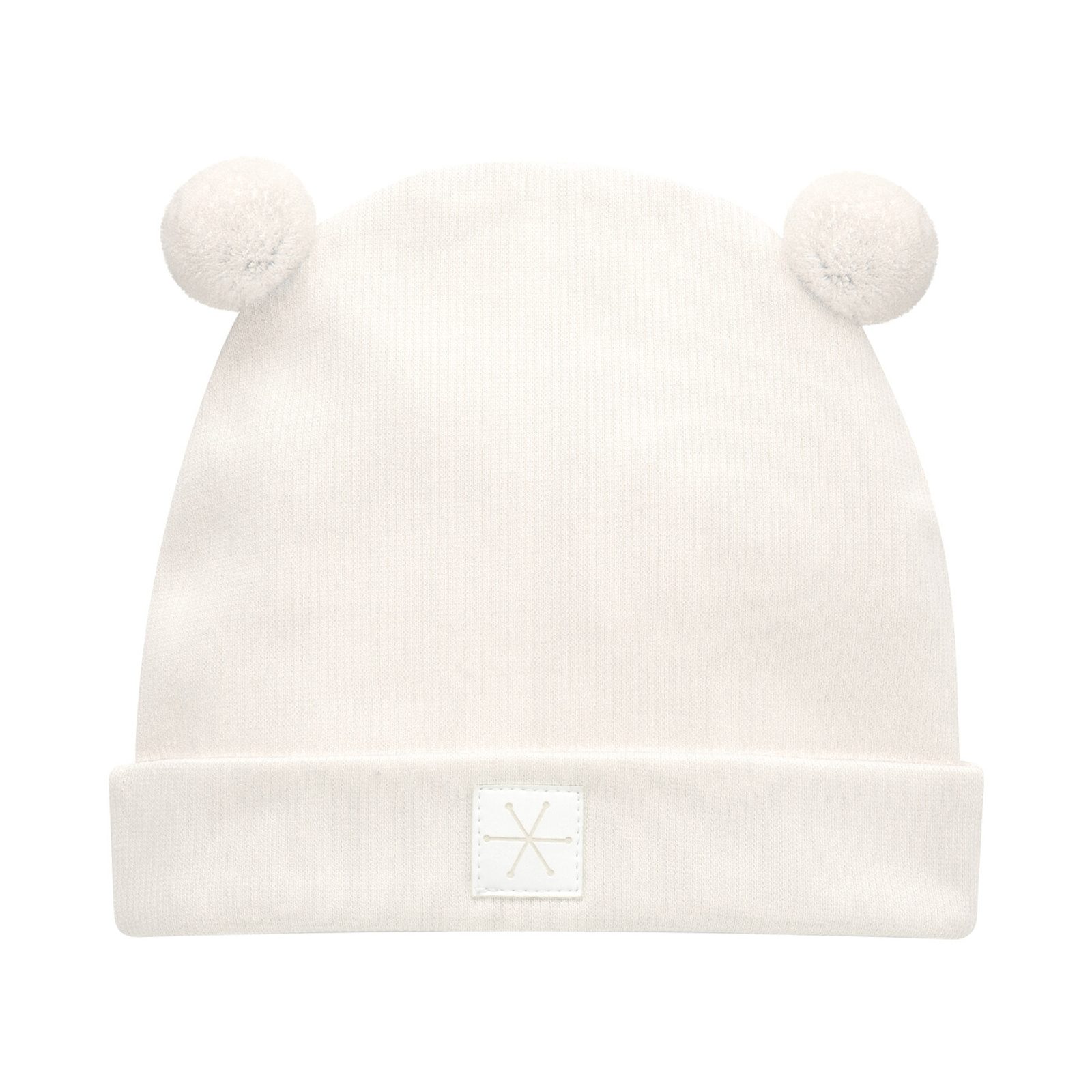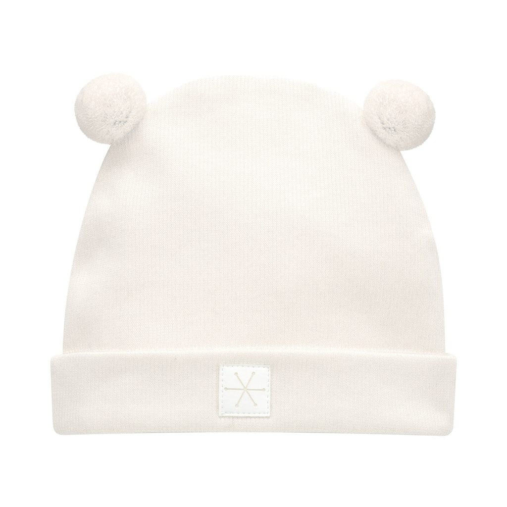 Kojenecká čepička pro miminko z kolekce Winter značky PINOKIO v KRÉMOVÉ barvě: z žebrovaného úpletu, s ozdobnými bambulkami a nášivkou, materiál: 95% bavlna/5% elastan vyrobeno v EU. Slaďte s dalšími kousky oblečení ze stejné kolekce značky PINOKIO!