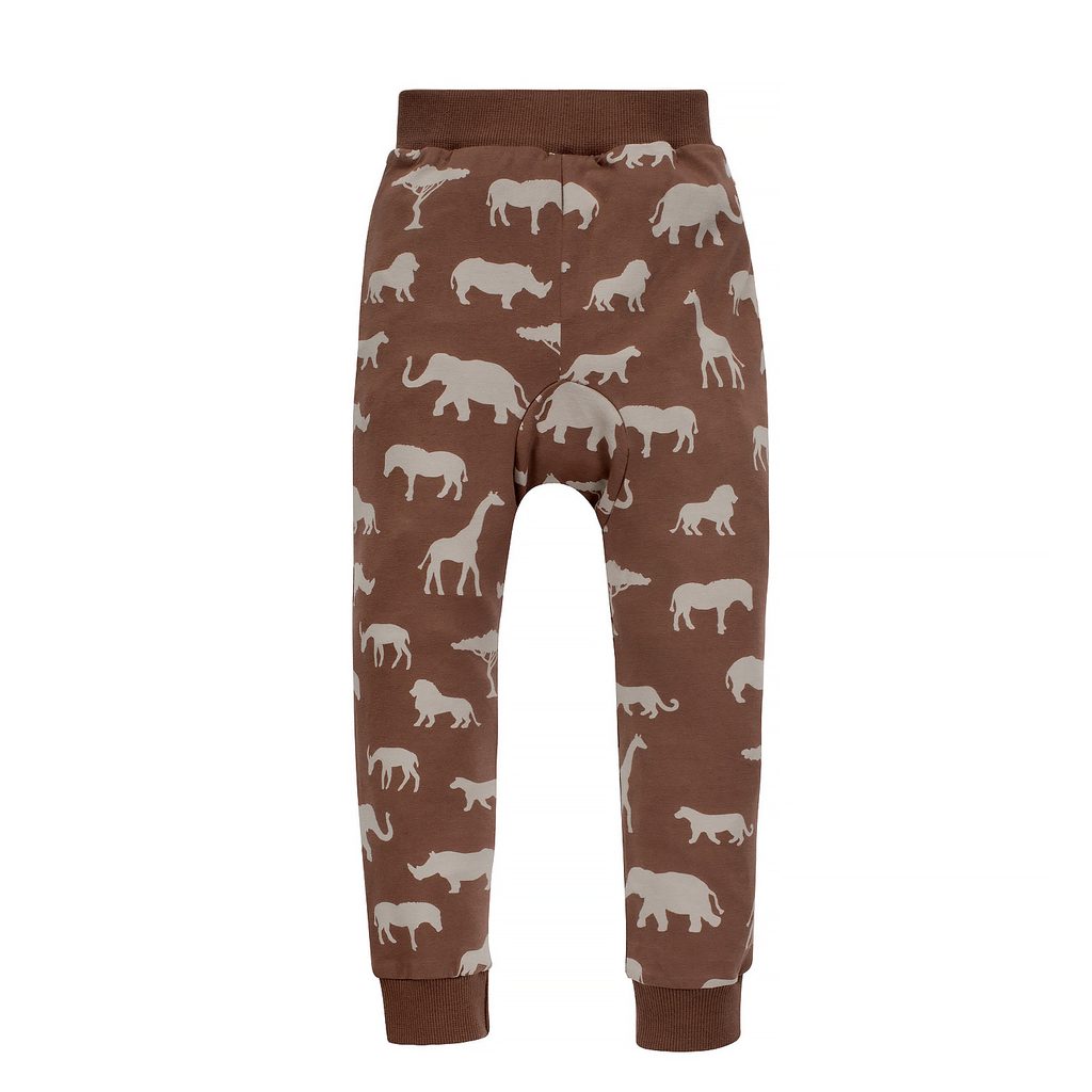 Lehké úpletové tepláčky značky PINOKIO z kolekce Safari v HNĚDÉ barvě s motivem afrických zvířat: