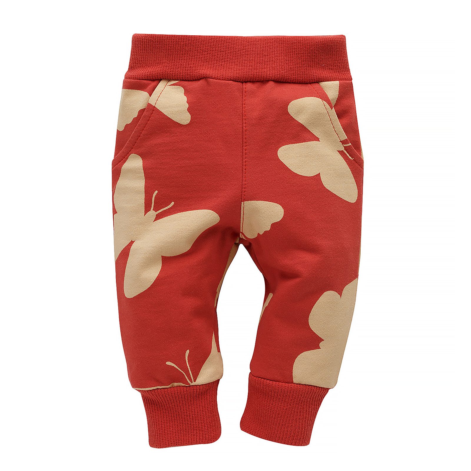 Dětské tepláky značky PINOKIO z kolekce Imagine v červené barvě s obrázky motýlů: