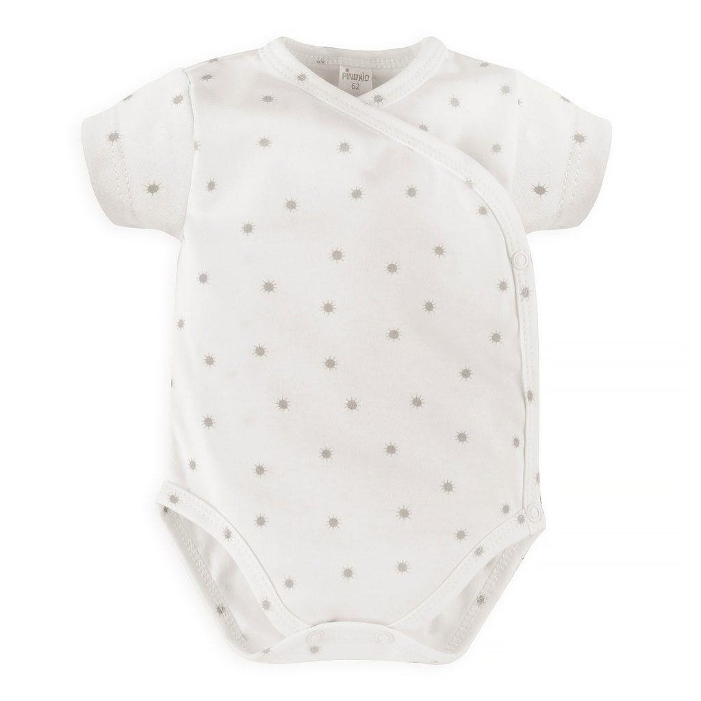 Zavinovací bodyčko pro miminko s krátkým rukávem z kolekce Hello značky Pinokio - krémové s motivem sluníček: