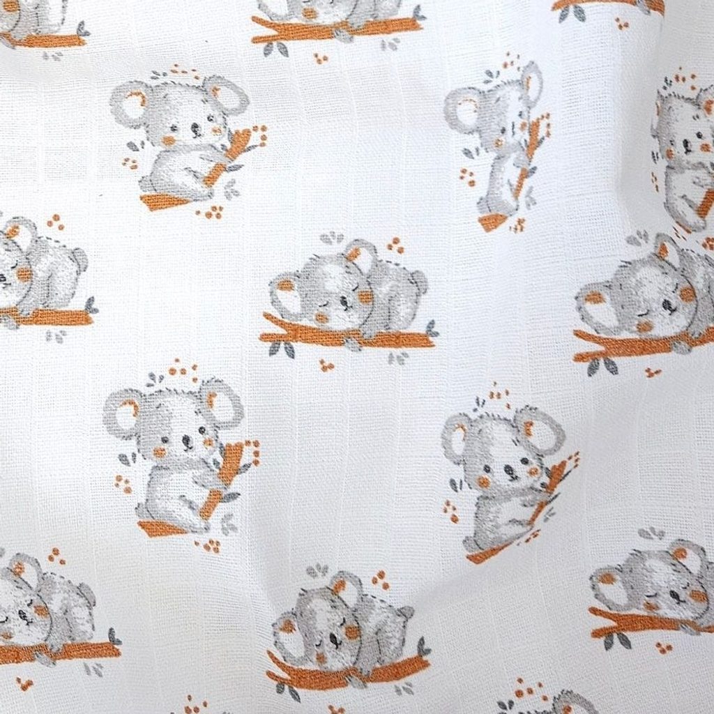 Bavlněná látková plena s potiskem 70x70cm výrobce PREM - vzor Koala KLUK: nová verze v lepší kvalitě - na dotek hladší, měkčí, s pevnější vazbou, tetra plena = tkaná v dutinné vazbě s typickou čtvercovou strukturou, 2 okraje pevně vytkávané a 2 pevně založené okraje, materiál 100% bavlna.    …