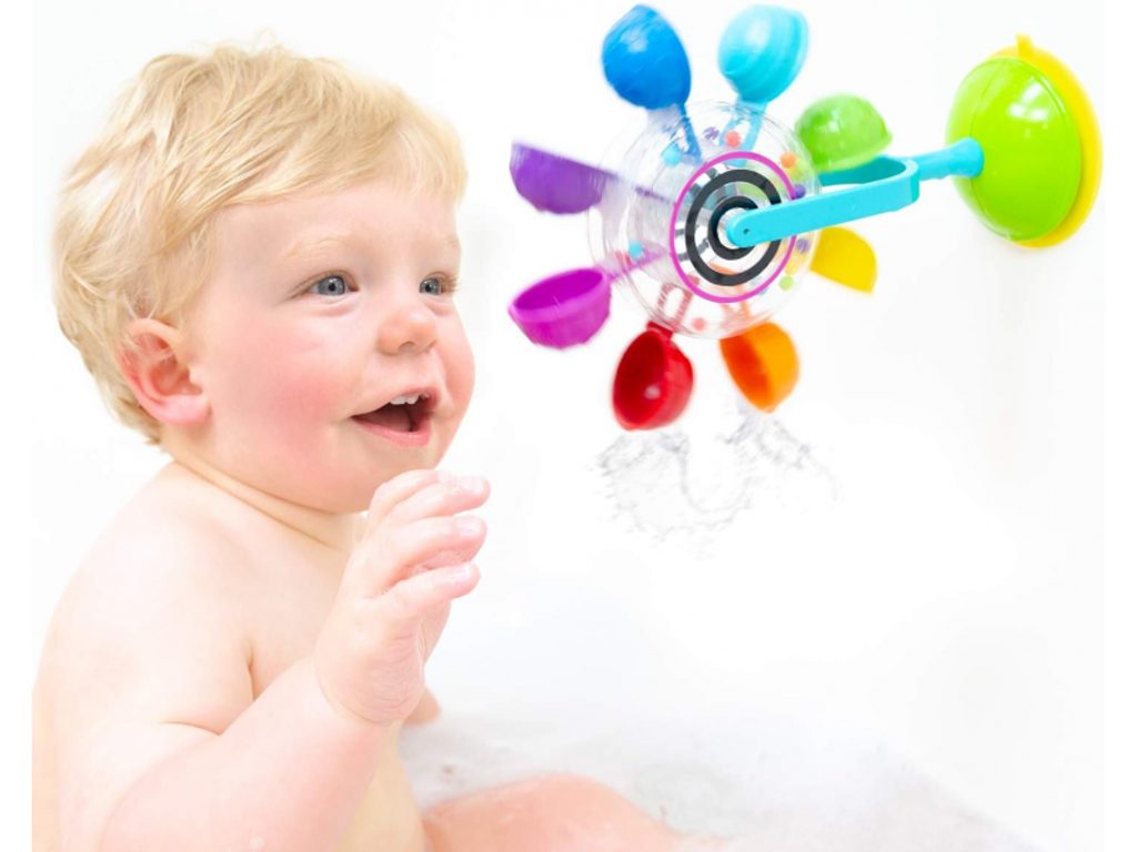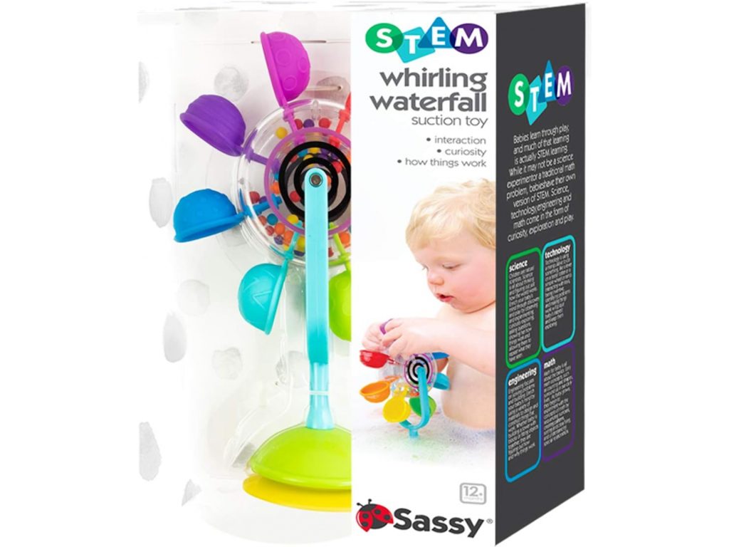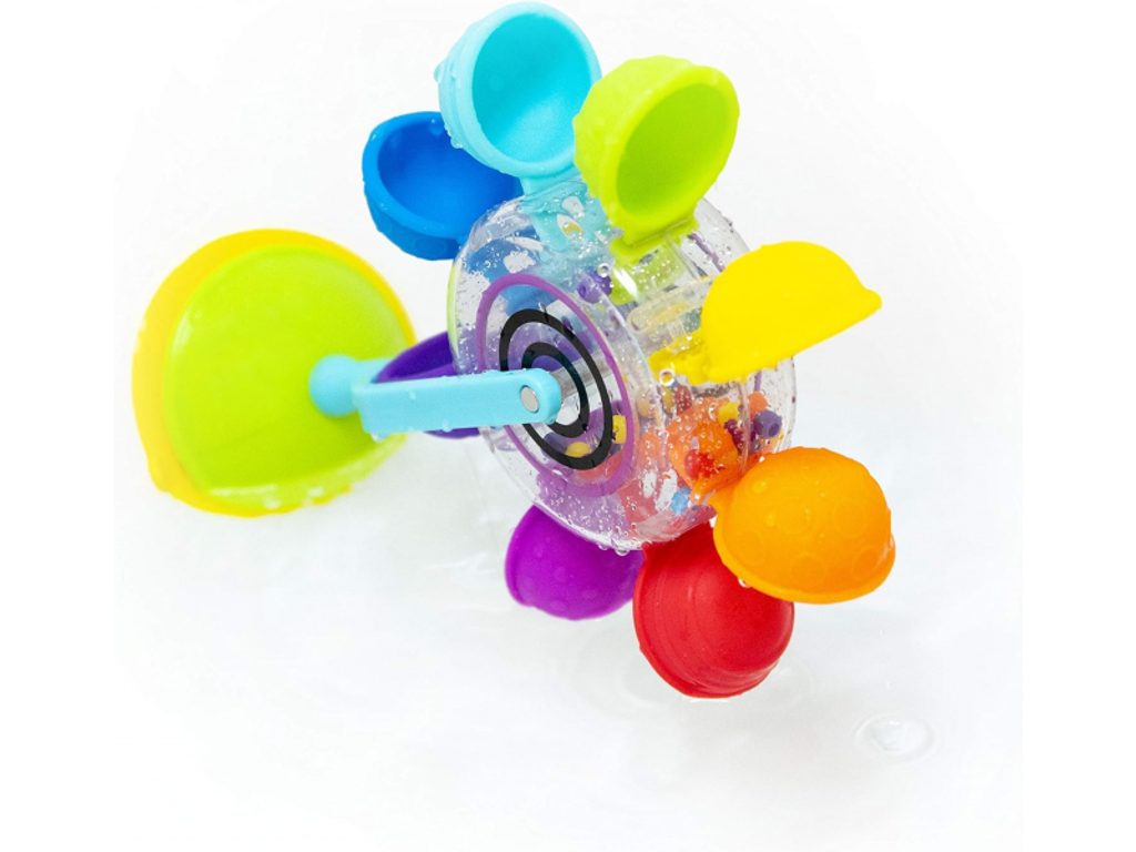 Vodní mlýnek od značky Sassy je jedinečná hračka do vody s přísavkou, s jejíž pomocí ji připevníte na dno nebo stěnu vany během koupání vašeho dítěte. Naléváním vody z kelímku na pružné barevné lopatky se mlýnek roztočí a korálky uvnitř průhledného středového dílu se začnou přesýpat a chrastit.