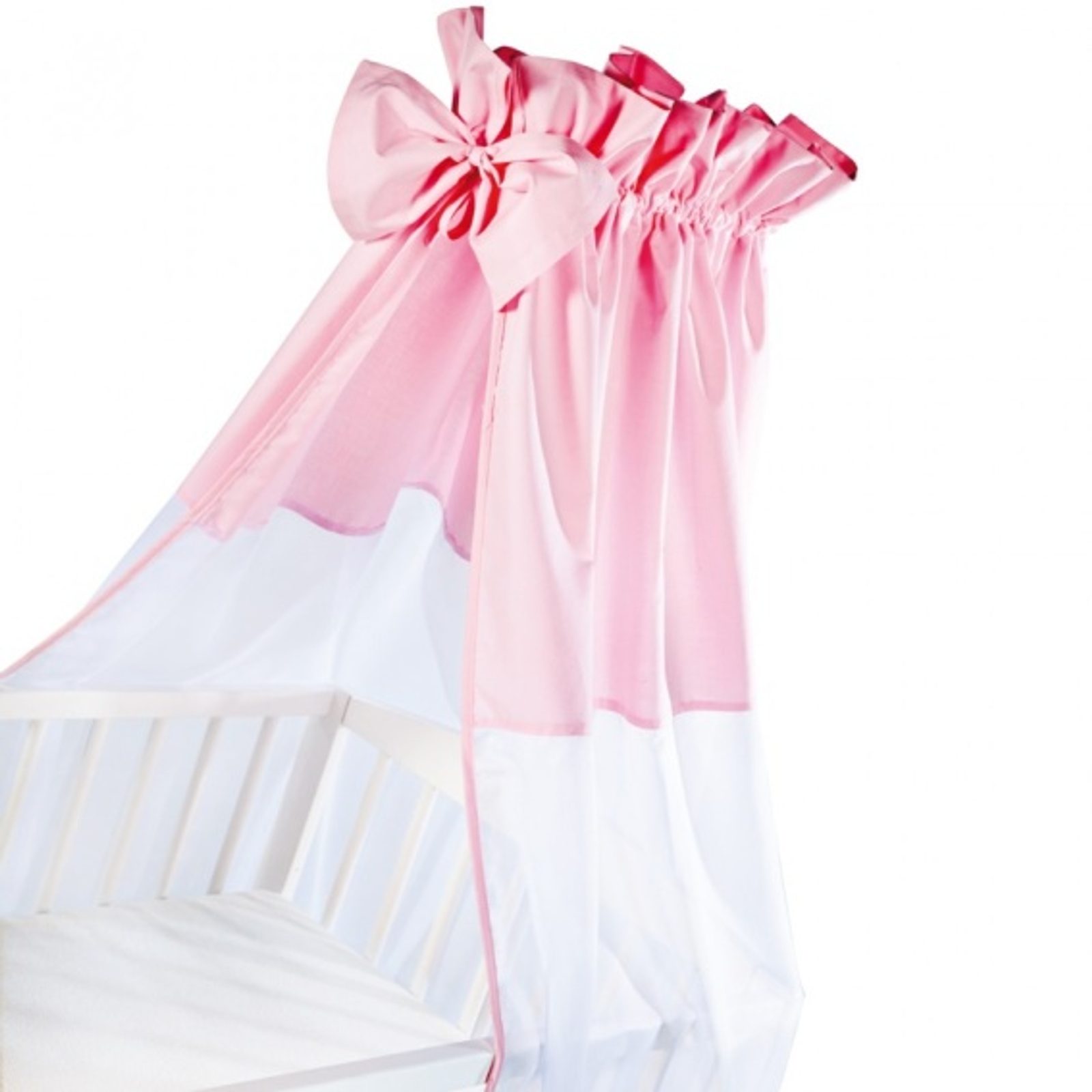 Univerzální nebesa nad postýlku v RŮŽOVO-BÍLÉ barevné kombinaci značky Albero Mio. Horní část nebes v růžové barvě je vyrobena ze 100% bavlny, spodní splývavá část je vyrobená z bílé průsvitné organzy (šifonu). Nebesa se umísťují na držák nebes, který není součástí jejich balení a je nutné jej zakoupit zvlášť.