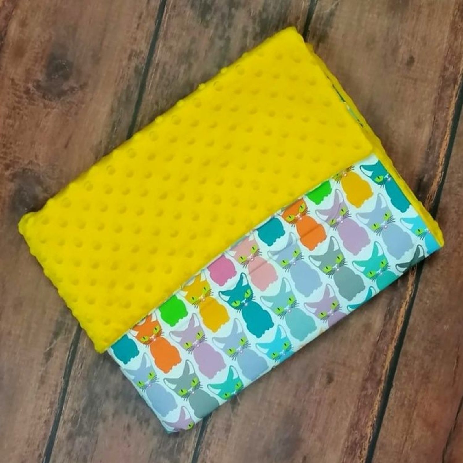 Oboustranná dětská deka bavlna-minky značky Madokomfort o rozměru 75x100cm - design KOČIČKY/ŽLUTÁ: