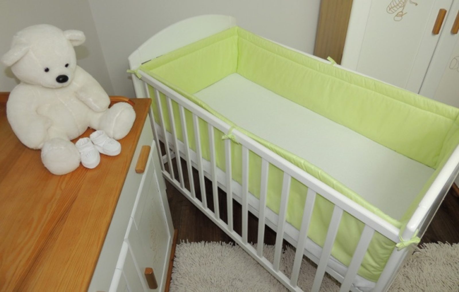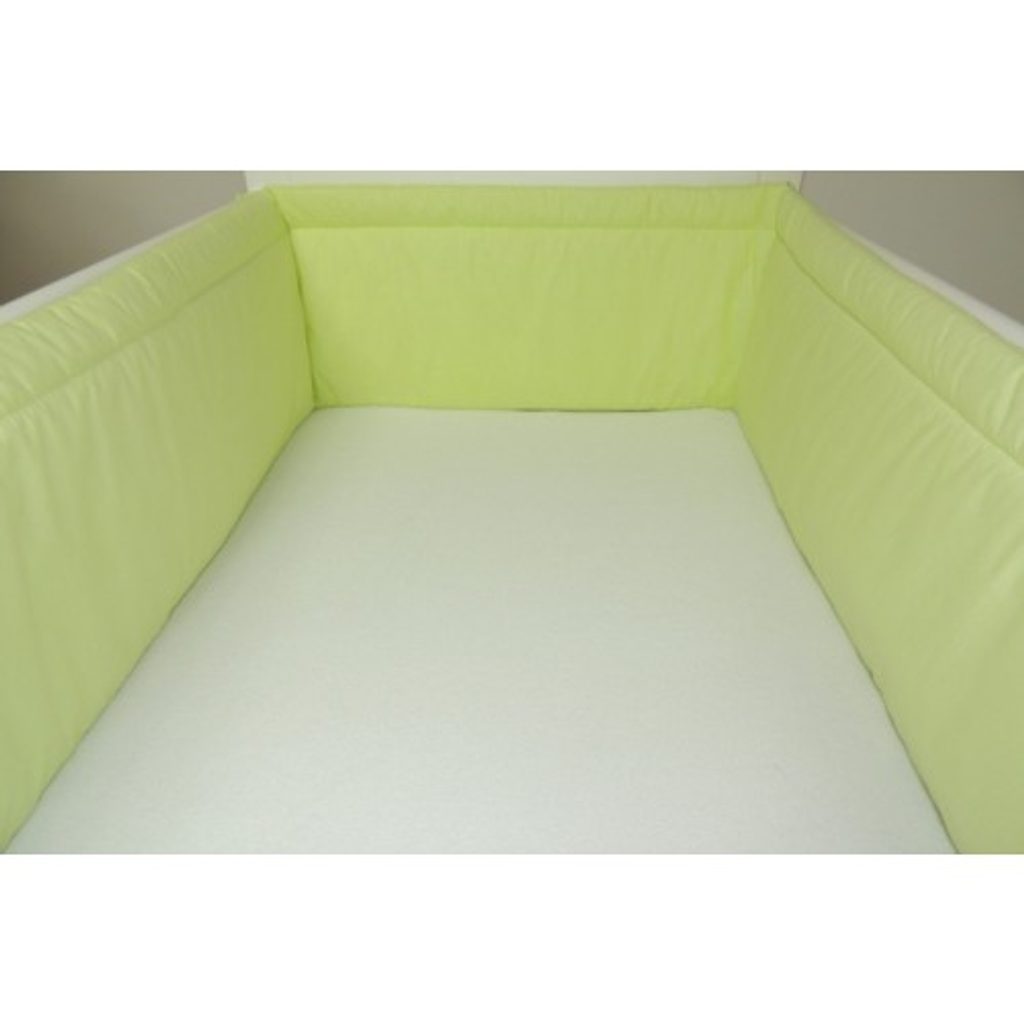 Mantinel do postýlky jednobarevný o délce 360cm (tj. okolo celé postýlky) v ZELENÉ barvě, vhodný do postýlek o rozměru 120x60cm. Mantinel se k postýlce upevňuje pomocí všitých tkanic. Vyroben ze 100% bavlny, s výplní z dutého vlákna. Vyroben z kvalitních a zdravotně nezávadných materiálů.
