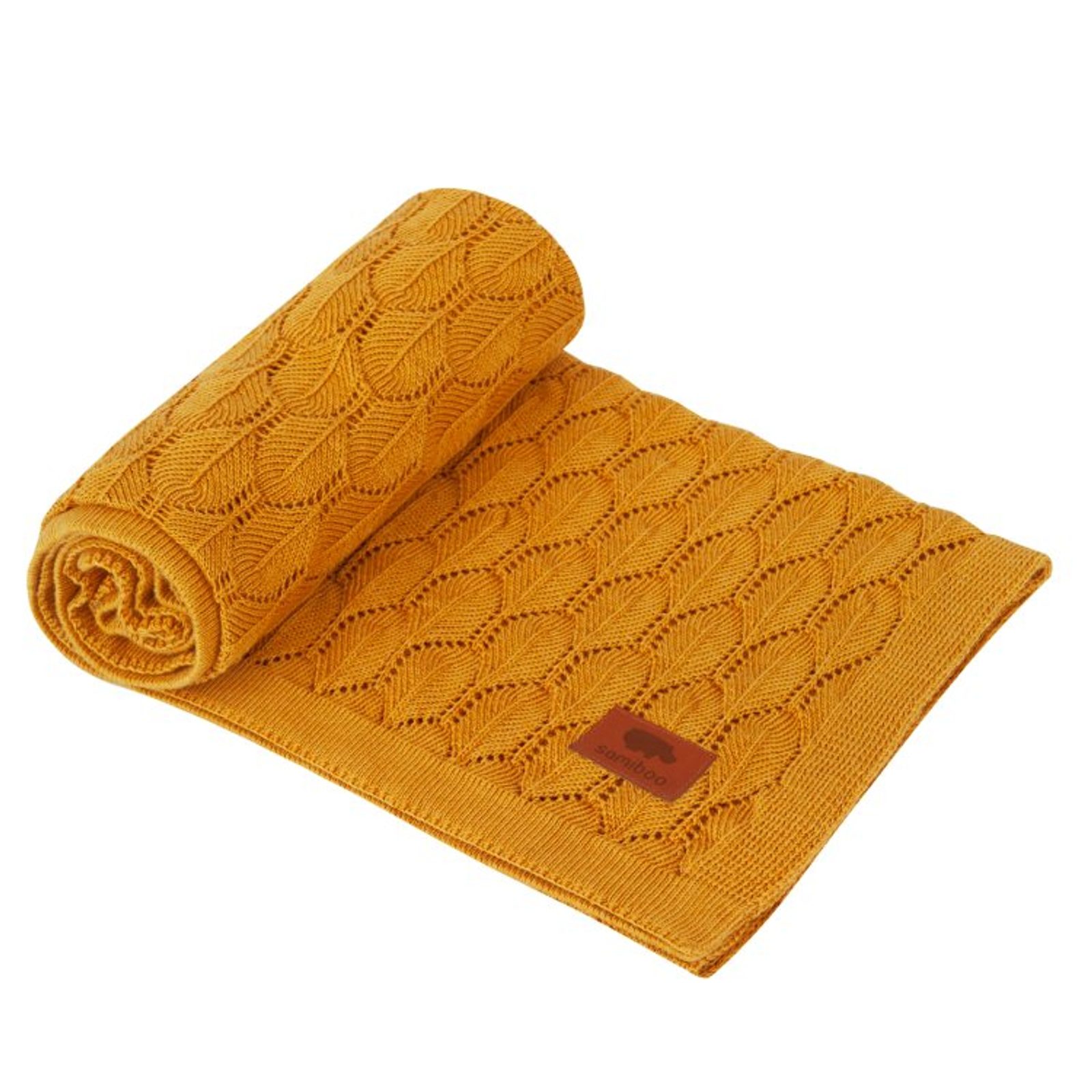 Bambusová pletená dečka Ažur od Samiboo. Barva: MUSTARD.