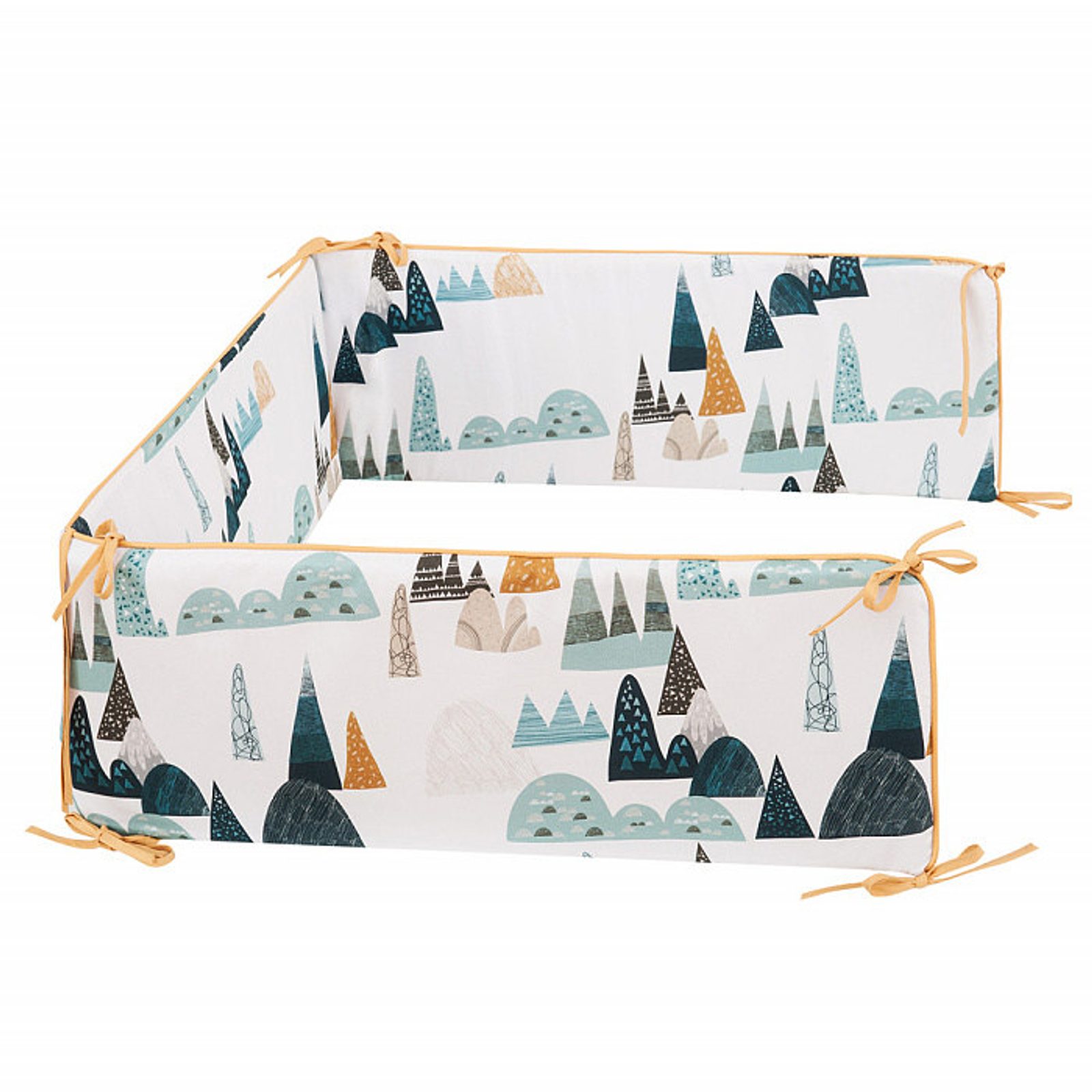 Ochranný mantinel do postýlky o rozměru 120x60cm z dílny Samiboo. V originálním, designovém provedení. Design HORY (Blue Hills)... inspirovaný skandinávským designem. Pro malé cestovatele a všechny, kteří milují hory a výšlapy: