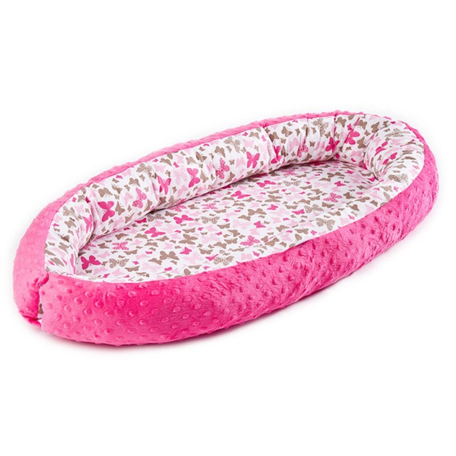 Hnízdečko pro miminko design MOTÝLCI RŮŽOVÉ od značky Sensillo: velikostně vhodné pro děti od narození do 6 měsíců, měkké boky dodávají miminku pocit bezpečí, praktické zapínání na dva druky, vyjímatelná molitanová matrace pro snažší údržbu, vyrobené z kombinace vzorované…