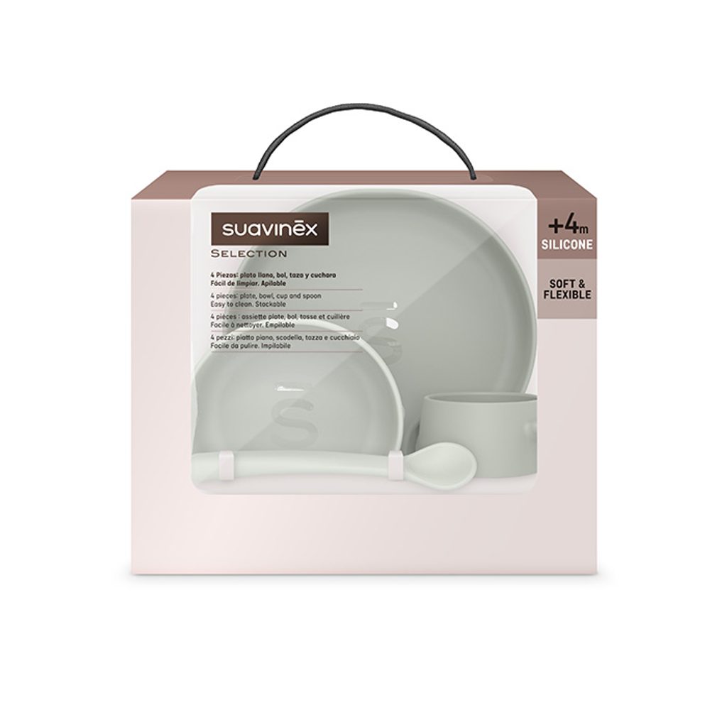 Dětský silikonový jídelní set Colour Essence značky Suavinex v ZELENÉ barvě španělského farmaceutického výrobce je ideální pro děti, které se učí jíst samostatně. Nádobí je vyrobeno z měkkého flexibilního silikonu. Stylový set obsahuje: