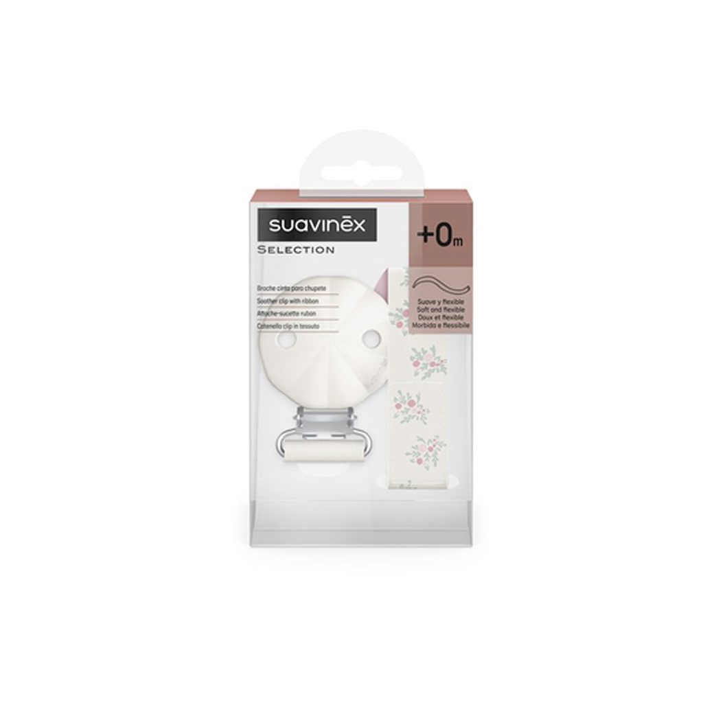 Stylový klip na dudlík se stuhou španělské značky Suavinex z kolekce Poetry - design RŮŽOVÝ (krémový klip s růžovou stužkou). Nechte se unášet na vlně jedinečného designu a kvalita značky Suavinex!