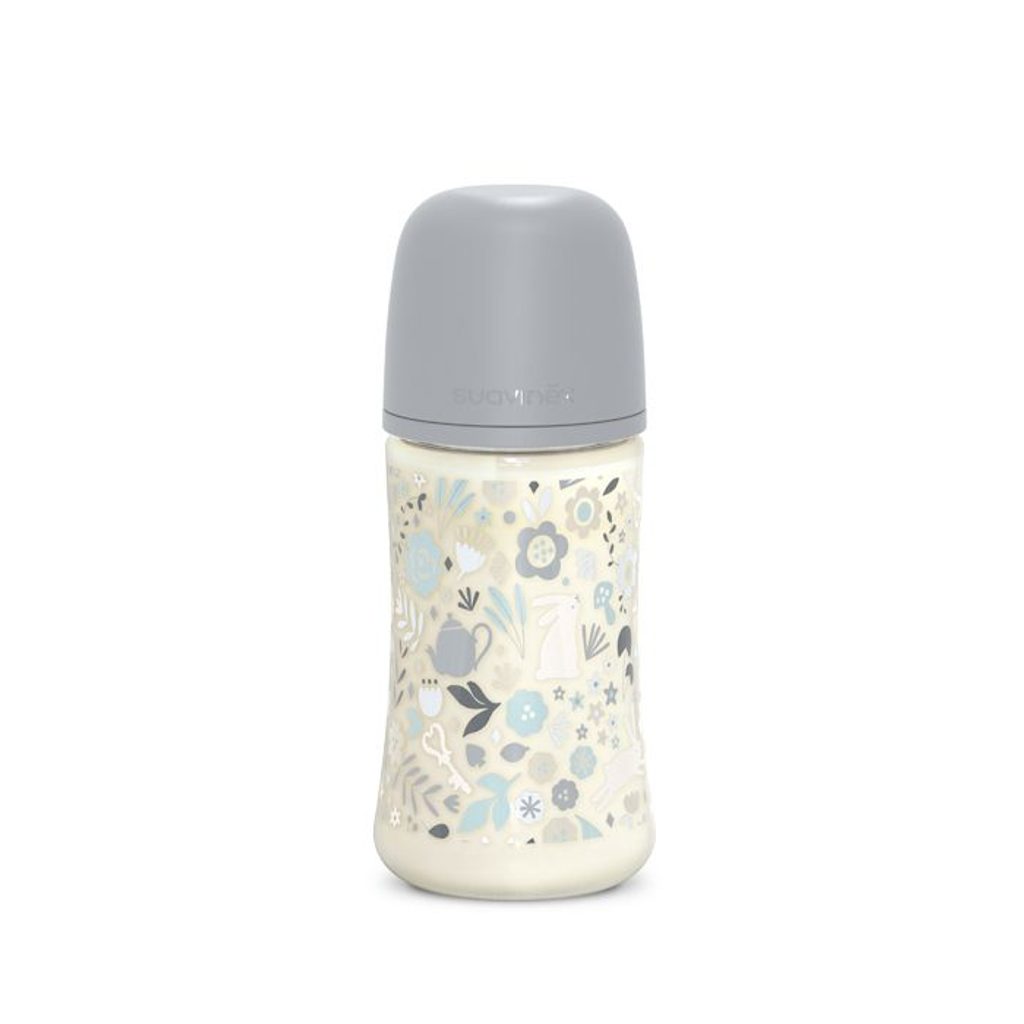 Kojenenecká láhev 270ml se savičkou SX Pro z prémiové řady Wonderland značky Suavinéx - barva LIBERTY MODRÁ.  vhodná pro děti 3m+, široké hrdlo pro snadné plnění a čištění láhve, ergonomický tvar pro pohodlné držení, těsnící disk pro snadný transport naplněné láhve bez rozlévání, přehledná odměrná…