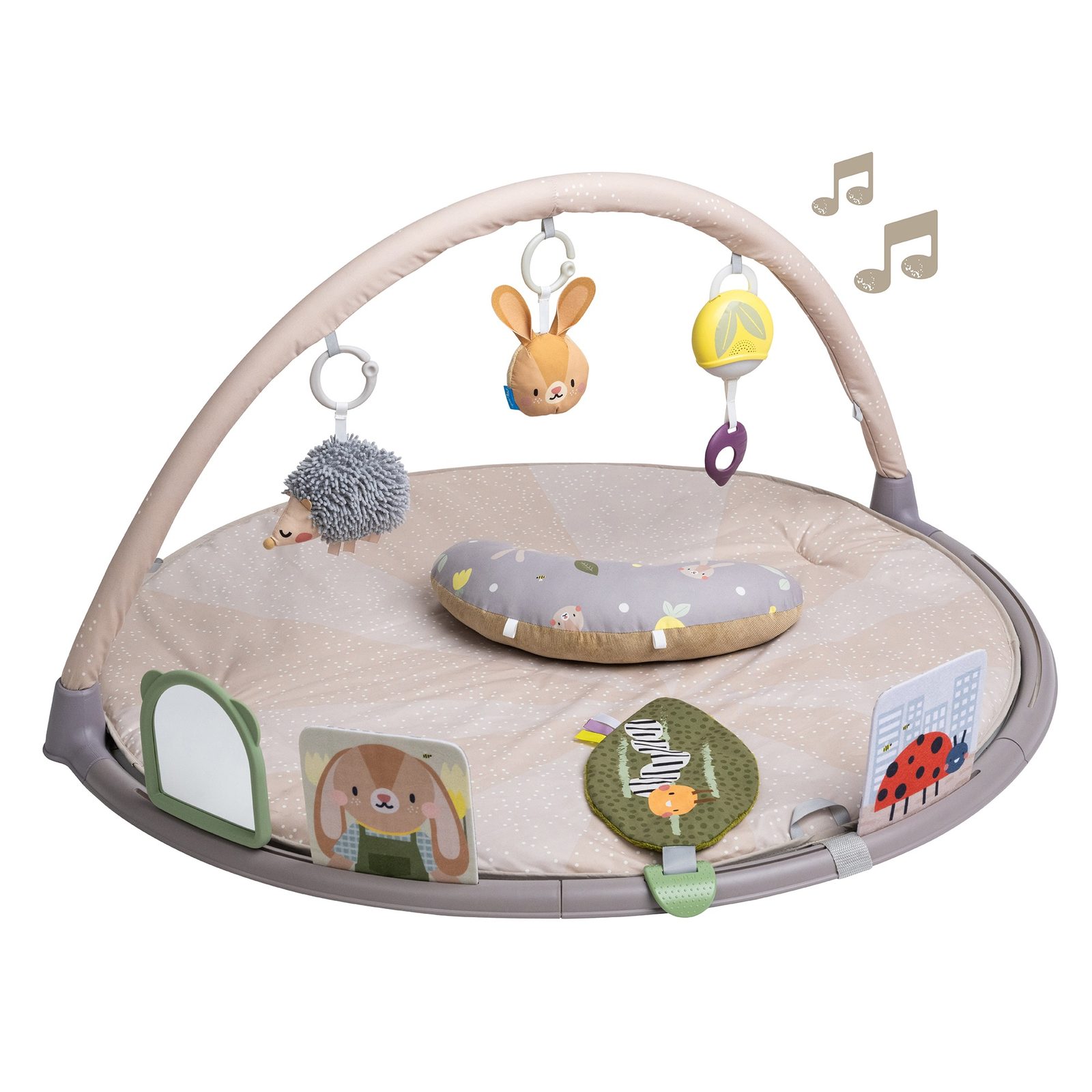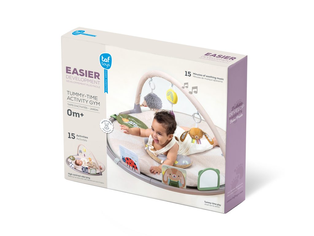 Originální odnímatelné hračky včetně bezpečného zrcátka upoutají pozornost dítěte a zajistí mu hodiny zábavy vleže na zádech, na boku i na bříšku. Speciální půlkruhová lišta po obvodu deky je určena pro umístění karet s výraznými obrázky a motivy, které společně se speciálně tvarovaným polštářkem podněcují dítě ke hře na bříšku. Vysoce kontrastní černobílé ilustrace jsou určeny pro děti od narození do 3 měsíců, ilustrace ve výrazných barvách jsou ideální pro děti od 3 měsíců. Poloha na bříšku přináší děťátku jiný pohled na svět a posiluje krční a zádové svaly, které později umožňují dítěti začít se přetáčet, lézt a sedět bez opory.