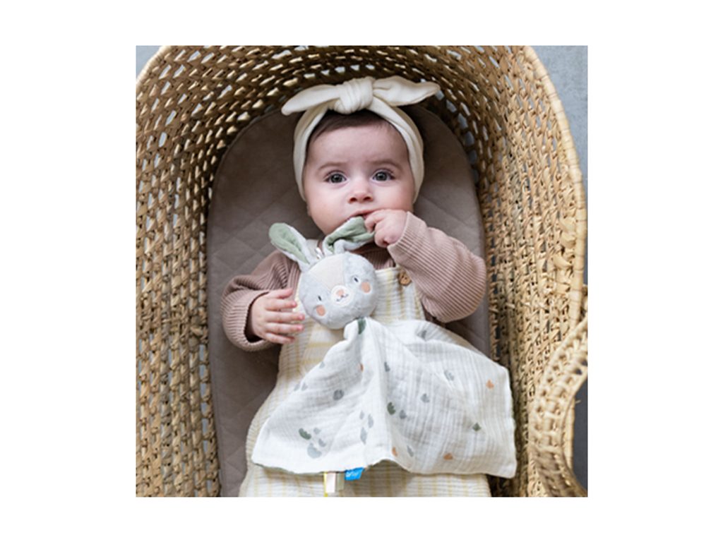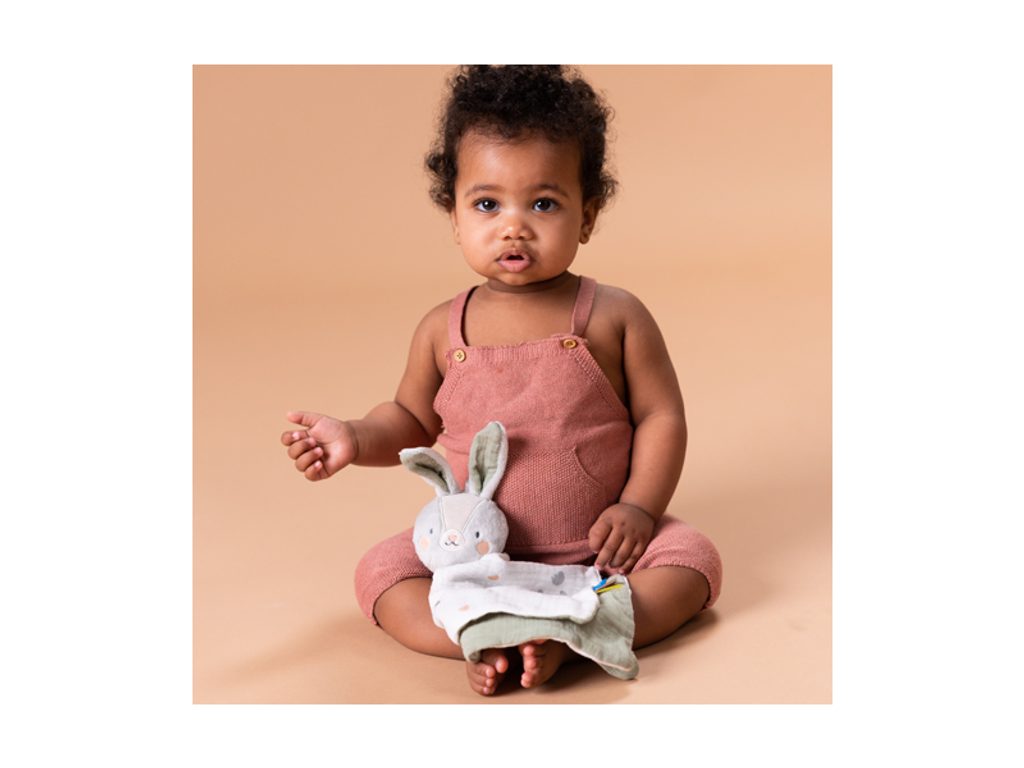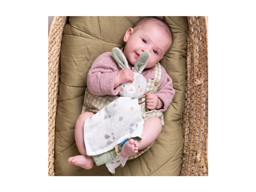 Muchláček Králíček Rylee značky Taf Toys: Mazlicí hračka v podobě usměvavého králíčka Rylee zpříjemní vašemu miminku usínání v postýlce. Muchláček z jemného, měkkého materiálu je vhodný jako první hračka dítěte a zároveň pomáhá rozvoji smyslů a emoční inteligence dítěte.
