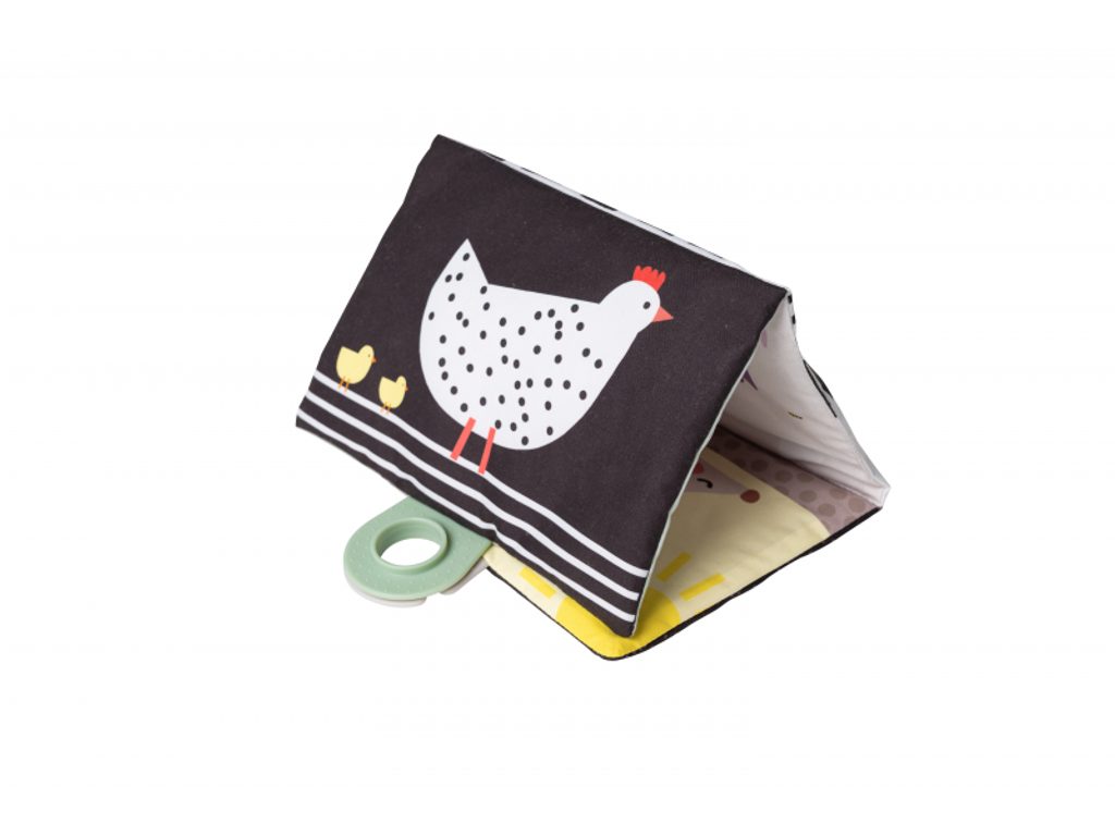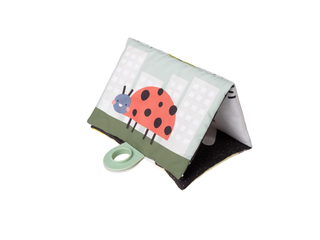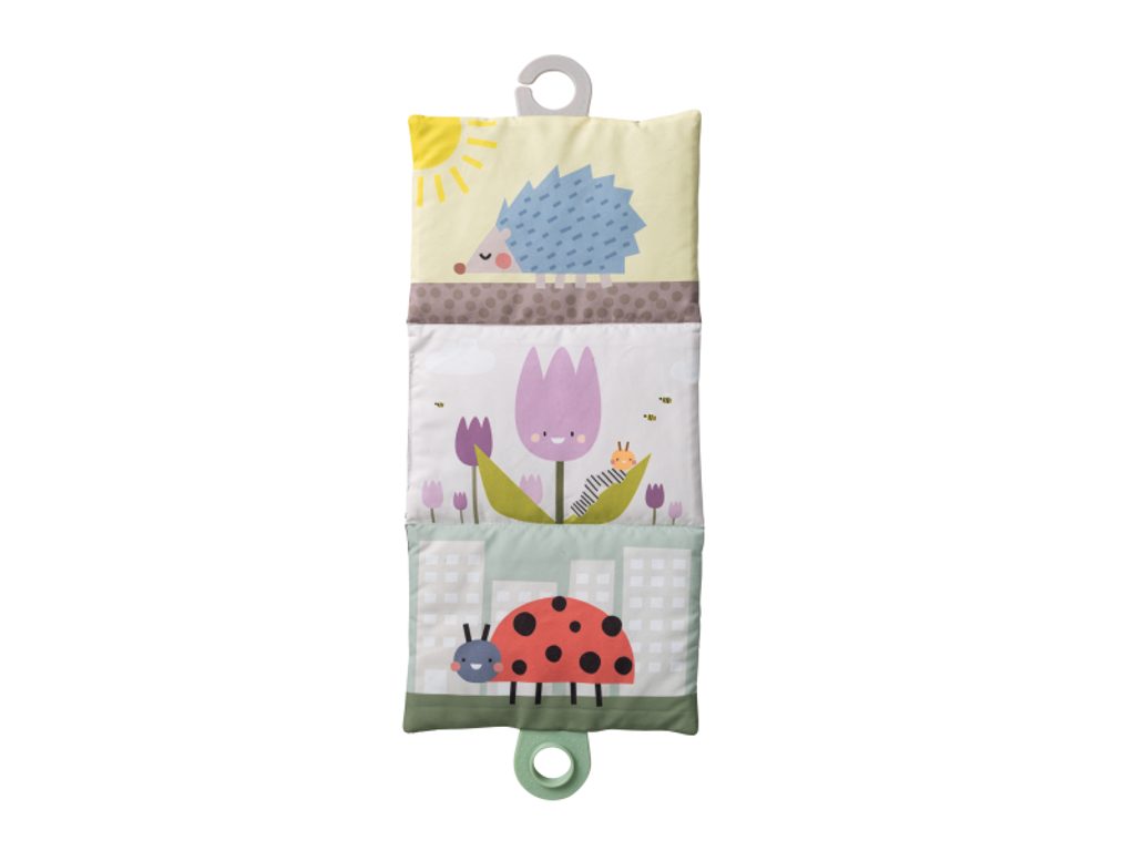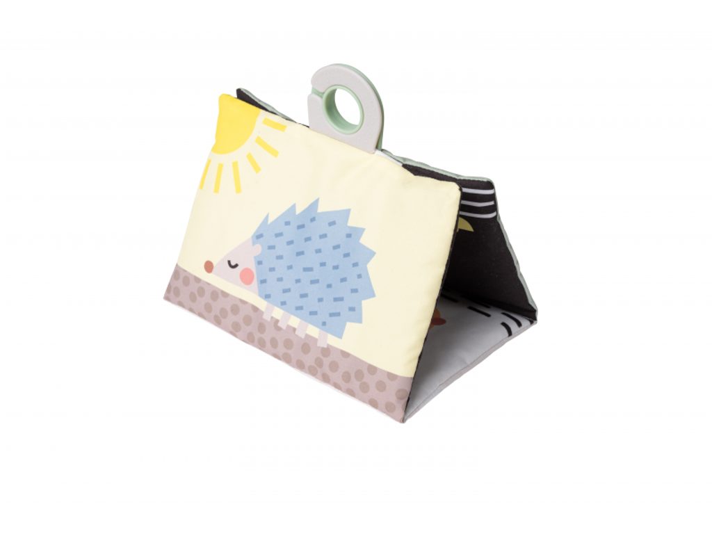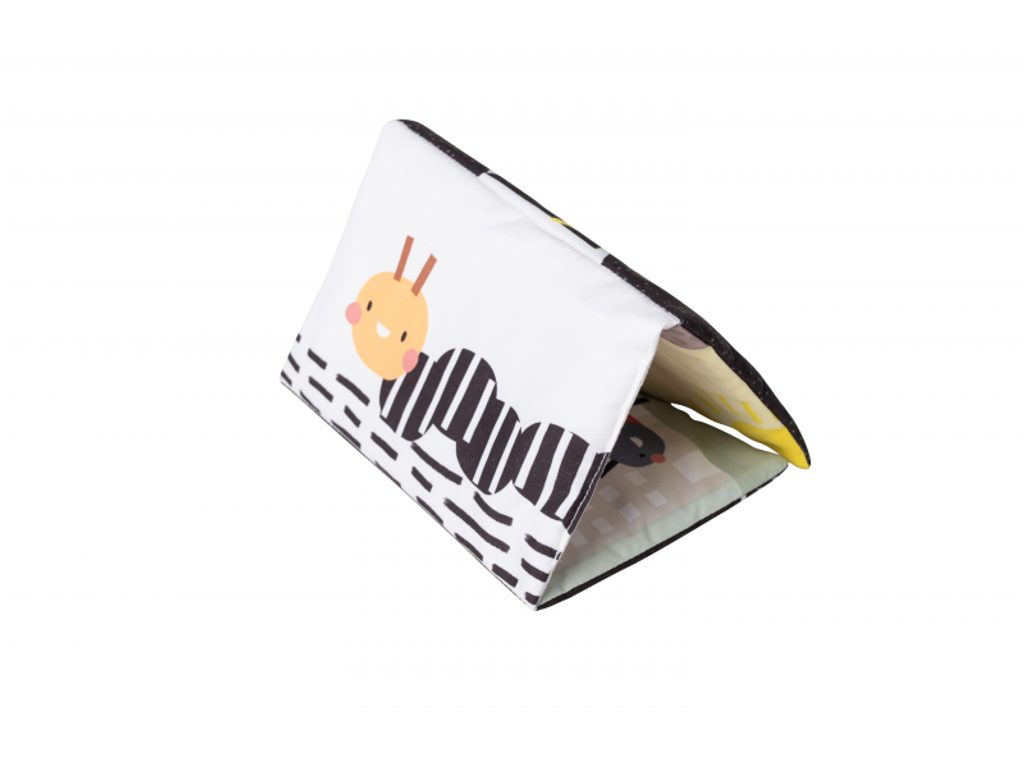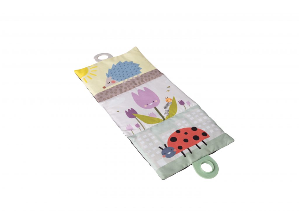 Polštářek z měkkého, příjemného materiálu je speciálně navržený, aby podporoval hraní dítěte na bříšku. Oboustranná šusticí kniha je ideální pro postavení před dítě v poloze na bříšku. Množství obrázků, které kniha nabízí, umožňuje rodičům obrázky vyměňovat a udržovat tak déle pozornost dítěte. Hru na bříšku podporuje i vodní hrací podložka s výraznými žlutými květinami, které se ve vodě při zmáčknutí podložky pohybují a upoutávají tak pozornost dítěte.