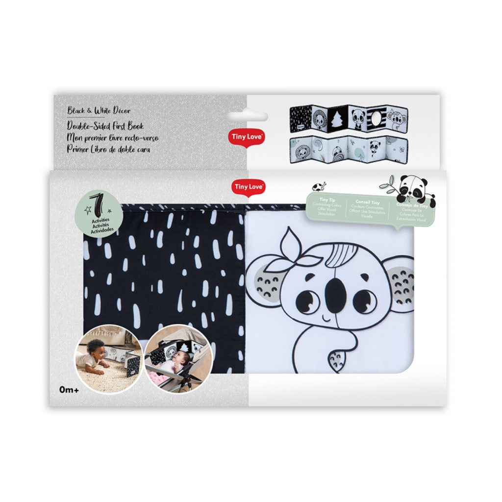 Kontrastní knížka pro nejmenší Black&White od Tiny Love pomáhá stimulovat a rozvíjet dětské smysly a emoční inteligenci. Oboustranná textilní knížka pro nejmenší Tiny Love je určena do kočárku, postýlky i na hrací deku: